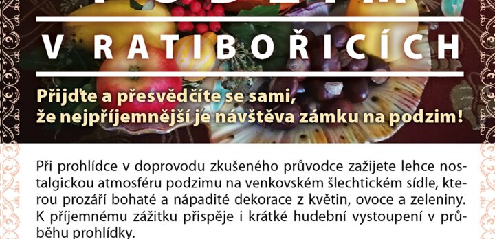 V měsíci říjnu jsou objekty přístupné v sobotu i v neděli a v době podzimních prázdnin od 25. do 29. 10., včetně státního svátku 28. 10., od 10 do 15 hodin. Z důvodu rezervovaných časů pro objednané skupiny se ve dnech 30. a 31. 10. prohlídky zámku uskuteční v 11:00 a ve 13:00 hodin. Děkujeme za pochopení. Dále bude pro veřejnost otevřeno ještě také 1. a 2. 11., kdy návštěvnická sezona 2025 skončí. V těchto prvních dvou listopadových dnech jsou základní okruhy zpřístupněné zdarma pro válečné veterány.