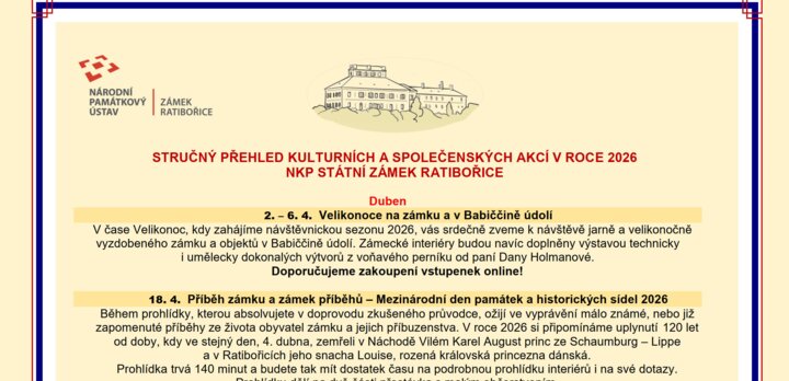 Přijímáme již objednávky organizovaných skupin na komponovaný program - prohlídkový okruh 10. Za Babičkou Boženy Němcové do Ratibořic ve dnech 2. - 4. 6. 2026.